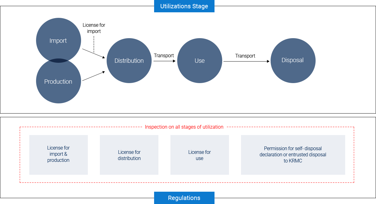 For regulation of radiation-utilizing facilities and institutions, NSSC reviews and assesses applications of their products, distributions, and uses. NSSC also conducts pre-service inspection, periodic inspection, quality assessment, and other regulatory inspections to check whether the facilities and institutions comply with the standards and regulations imposed on their licenses